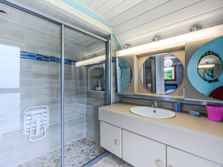 "Villa Guidel Plages", 5-Zimmer-Villa 172 m2. Schön eingerichtet: Wohn-/Esszimmer mit TV (Flachbildschirm). Ausgang zur Terrasse. 1 Zimmer mit 1 franz. Bett (1 x 140 cm, Länge 200 cm). Ausgang zur Terrasse, zum Schwimmbad. Offene Küche (Backofen, Geschirrspüler, 3 Induktionskochplatten, Toaster, Wasserkocher, Tiefkühler, elektrische Kaffeemaschine, Kombinationsmikrowelle). Dusche, sep. WC. Obergeschoss: 1 Zimmer mit 2 Betten (80 cm, Länge 200 cm), Dusche. 1 Zimmer mit 2 Betten (90 cm, Länge 200 cm). 1 Zimmer mit 1 franz. Bett (1 x 160 cm, Länge 200 cm). Sep. WC. Terrasse 60 m2, grosser Garten. Terrassenmöbel, Gartengrill, Liegestühle. Zur Verfügung: Waschmaschine, Bügeleisen, Kinderhochstuhl. Internet (WLAN, gratis). Parkplatz. Bitte beachten: Nichtraucher-Unterkunft. Rauchmelder. Der ausgeschriebene Pool ist zur alleinigen Nutzung. Inserat einer Privatperson nach Artikel 155, IV, CGI.