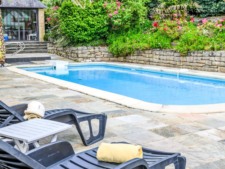 Guidel Plages: Villa "Villa Guidel Plages", auf 2 Stockwerken. 400 m vom Meer, 400 m vom Strand. Zur Alleinbenutzung: Garten, Schwimmbad beheizt (4 x 10 m, saisonale Verfügbarkeit: 01.Jun. - 30.Sep.). Parkplatz. Lebensmittelgeschäft 500 m, Supermarkt 3.5 km, Restaurant, Bar 600 m, Bäckerei 500 m, Café 600 m, Bushaltestelle "Guidel" 5 km, Sandstrand "Plage Du Bas Pouldu" 400 m. Sporthafen 800 m, Surfschule, Tennis 500 m. Nahe gelegene Sehenswürdigkeiten: Port de Guidel 800 m, Plage du Fort Bloqué 5 km, Lorient 15 km, Iles de Groix, Belle Ile en Mer, Concarneau 47 km.