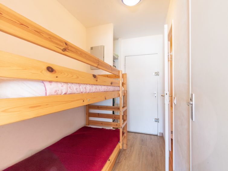 "Résidence La Santa Maria", 1-Zimmer-Wohnung 24 m2 im 2. Stock. Objekt geeignet für 2 Erwachsene + 2 Kinder. Wohn-/Esszimmer mit 1 Diwanbett (140 cm, Länge 190 cm), TV (Flachbildschirm). Ausgang zur Terrasse. Kabine mit 1 x 2 Etagenbetten (90 cm, Länge 190 cm). Offene Küche (Geschirrspüler, 4 Induktionskochplatten, Toaster, Wasserkocher, Mikrowelle, Tiefkühler, elektrische Kaffeemaschine). Dusche, sep. WC. E-Heizung. Terrasse 7 m2, Westlage. Terrassenmöbel. Schöne Sicht auf den Hafen. Zur Verfügung: Internet (Wireless LAN, extra). Parkplatz (1 Auto). Bitte beachten: Rauchmelder. Anstelle eines abgeschlossenen Schlafzimmers befinden sich manche Schlafplätze in einem offenen Bereich (Galerie, Nische etc.).