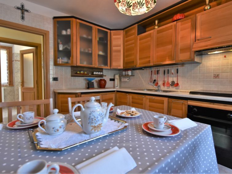 3-Zimmer-Wohnung 90 m2 im 1. Stock. Geräumig, zweckmässig und komfortabel eingerichtet: Wohn-/Esszimmer mit Schwedenofen (nur Deko), Esstisch und TV. Ausgang zum Garten. 1 grosses Doppelzimmer. 1 Zimmer mit 2 Betten. Küche (1 Kochplatte, Backofen, 3 Flammen, Toaster, Wasserkocher, Mikrowelle) mit Esstisch. Bad/Dusche/Bidet/WC. Heizung. Parkettboden. Garten. Terrassenmöbel, Gartengrill, Liegestühle (4). Sicht auf die Berge und den Garten. Zur Verfügung: Waschmaschine, Haartrockner. Internet (Wireless LAN, gratis). Bitte beachten: Nichtraucher-Haus. Eigener Eingang. IT014072C2SY265NGM