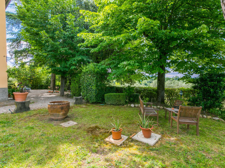 "Villa il Giglio", 7-Zimmer-Villa 230 m2 auf 2 Stockwerken. Geräumig, vollständig renoviert, komfortabel und stilvoll eingerichtet: Eingang. Wohnzimmer mit 1 Diwanbett (160 cm). 1 Doppelzimmer mit Dusche/Bidet/WC. Ausgang zum Garten. Wohnküche (Backofen, Geschirrspüler, Gasherd, 5 Flammen, Toaster, Wasserkocher, Mikrowelle, Tiefkühler, elektrische Kaffeemaschine) mit Esstisch. Ausgang zum Garten. Sep. WC. Obergeschoss: grosses Wohnzimmer mit offenem Kamin und TV (Flachbildschirm). 1 Doppelzimmer mit Dusche/Bidet/WC. Durchgangszimmer mit 1 Doppelbett und Dusche/Bidet/WC. Verbundenes Zimmer mit 1 Bett (120 cm). Natursteinboden. Komfortable Einrichtung im Landhausstil. Grosser Gartensitzplatz. Terrassenmöbel, Gartengrill, Liegestühle, Abstellkammer. Schöne Panoramasicht auf die Landschaft. Zur Verfügung: Waschmaschine, Bügeleisen, Kinderhochstuhl, Babybett bis 2 Jahre, Haartrockner. Internet (Wireless LAN, gratis). Parkplatz beim Haus. Bitte beachten: Nichtraucher-Unterkunft. Eigener Eingang. IT048038C22AOF94BI