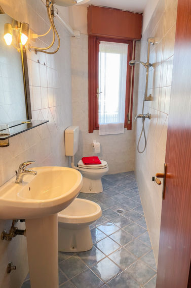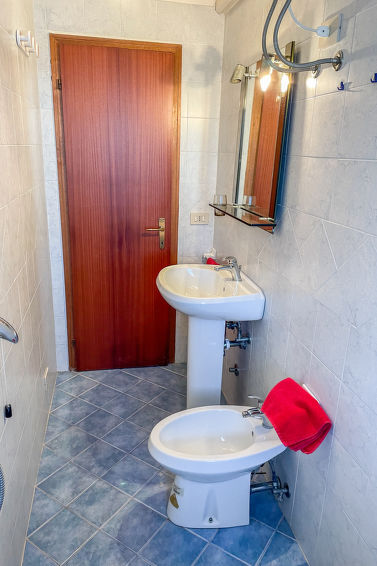 2-Zimmer-Wohnung 60 m2 im 2. Stock. Hell, einfach und zweckmässig eingerichtet: Wohn-/Esszimmer mit 1 Doppeldiwanbett, 1 Wandklappbett und TV. Ausgang zur Terrasse. 1 Doppelzimmer. Kochnische (Backofen, 4 Flammen, Mikrowelle) mit Esstisch. Dusche/Bidet/WC. Klimaanlage. Keine Heizmöglichkeit. Terrasse. Zur Verfügung: Babybett. Bitte beachten: geeignet für Familien. Nichtraucher-Unterkunft. Maximal 1 Haustier/Hund erlaubt. IT027034B4QD3TCATB