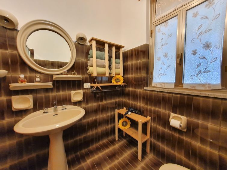 Huis 3-kamers 80 m2, op de begane grond. Doelmatig ingericht: woon-/eetkamer met 1 2-pers divanbed en TV (Flatscreen TV), air-conditioning en heteluchtverwarming. Uitgang naar het terras. 1 2-pers. kamer met air-conditioning en heteluchtverwarming. 1 kamer met 2 bedden, air-conditioning en heteluchtverwarming. Kookhoek (4 kookpitten (vlammen), broodrooster, waterkoker, magnetron, elektrische koffiemachine). Douche/bidet/WC. Verwarming, heteluchtverwarming. Verwarming alleen beschikbaar van 01.12. tot 31.03, Verwarming niet in alle ruimtes. Terras 25 m2, overdekt terras 30 m2, overdekt. Terrasmeubelen, barbecue, ligstoelen. Uitzicht in de verte op zee. Ter beschikking: wasmachine, strijkijzer, klamboe, kinderstoel, kinderbed tot 2 jaar (extra), haardroger. Internet (Internet (WiFi), gratis). Parkeerplaats (2 Auto's). Maximaal 1 huisdier/hond toegestaan. IT088005C2ICZQISLI