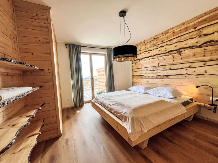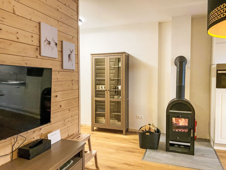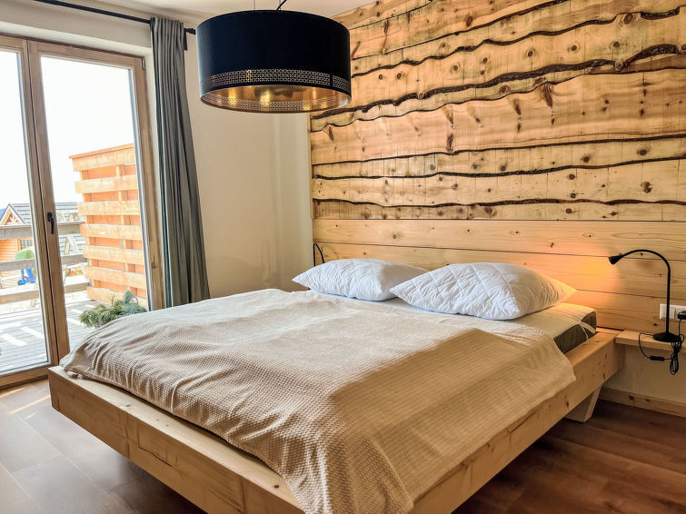 "Stieglitz", appartement 2-kamers 55 m2, souterrain. Modern en met veel hout ingericht: hal. Woon-/eetkamer met zwedenkachel, eettafel, Sat-TV en internationale TV-zenders (Flatscreen TV). Uitgang naar het terras. 1 kamer met 1 bed en 1 x 2 stapelbedden, 1 2-pers bed. Uitgang naar het terras. Open keuken (oven, afwasmachine, 4 keramische glas kookplaten, broodrooster, waterkoker, elektrische koffiemachine). Douche/WC. Vloerverwarming. Parketvloeren. Terras, op het zuiden gelegen. Terrasmeubelen, barbecue (verrijdbaar). Mooi uitzicht op de bergen. Ter beschikking: Internet (Internet (WiFi), gratis). Niet rokers woning.