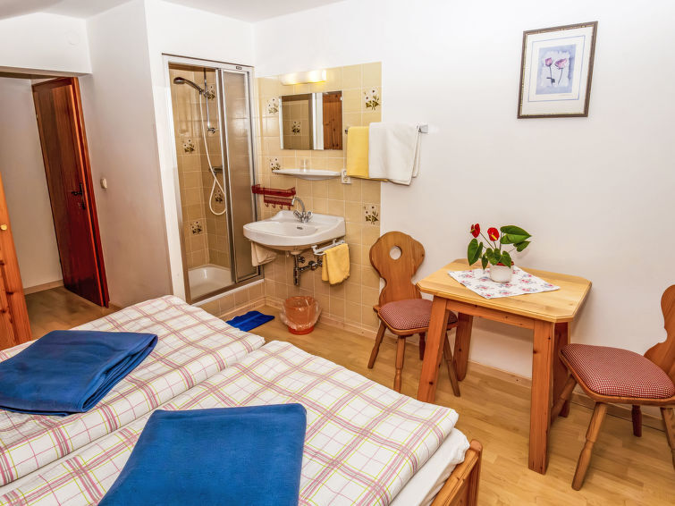 "Bischofsmütze", appartement 2-kamers 45 m2 op de 2e verdieping. Het objekt is geschikt voor 3 volwassenen. Rustiek en gezellig ingericht: hal. Woon-/slaapkamer 18 m2 met 1 2-pers divanbed, douche/WC en elektrische verwarming. Uitgang naar het balkon. 1 2-pers. kamer 16 m2 met 1 2-pers bed (180 cm, lengte 200 cm), douche/WC. Kleine keuken 8 m2 (2-pits kookplaat, oven, afwasmachine, elektrische koffiemachine). Balkonmeubilair. Zeer mooi uitzicht op de bergen en het landschap. Ter beschikking: Internet (WiFi, gratis). Parkeerplaats. 1 huisdier/hond toegestaan. 50407-000144-2020