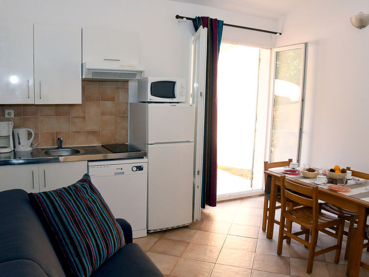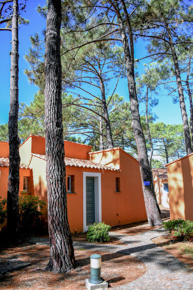 "T2 Cabine Type C", huis in een rij 2-kamers 32 tot 35 m2. Het objekt is geschikt voor 4 volwassenen + 2 kinderen. Doelmatig ingericht: woon-/eetkamer met 1 2-pers divanbed (140 cm, lengte 190 cm), 1 x 2 stapelbedden (90 cm, lengte 190 cm), TV (Flatscreen TV), air-conditioning. Uitgang naar het terras. 1 kamer met 1 2-pers bed (140 cm, lengte 190 cm). Kookhoek (afwasmachine, 2 keramische glas kookplaten, waterkoker, magnetron, elektrische koffiemachine). Bad/WC. Elektrische verwarming. Balkon of terras. Terrasmeubelen. Uitzicht op de tuin. Ter beschikking: Internet (WiFi). Maximaal 2 huisdieren/honden toegestaan. Rookmelders.
