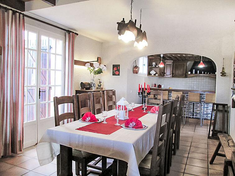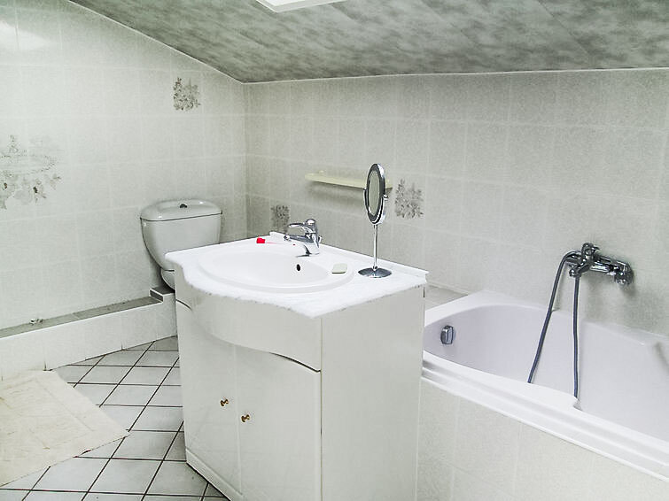 Huis 5-kamers 270 m2 op 2 verdiepingen. Ruim, doelmatig ingericht: hal. Groot woon-/eetkamer met open haard en Sat-TV (Flatscreen TV), DVD. Uitgang naar het terras. 1 kamer met 1 2-pers bed (140 cm, lengte 190 cm), TV. Uitgang naar de tuin. 1 kamer met 2 bedden (90 cm, lengte 190 cm). Uitgang naar het terras. Open keuken (oven, afwasmachine, 2 inductiekookplaten, 2 kookpitten (vlammen), broodrooster, magnetron, diepvriezer, elektrische koffiemachine, pads voor de koffiemachine (Senseo) extra) met bar. Bad/douche, aparte WC, dubbele wastafels. Bovenverdieping: 1 kamer met 2 bedden (90 cm, lengte 180 cm). Uitgang naar het terras. 1 kamer met 1 2-pers bed (1 x 160 cm, lengte 200 cm), bad/douche/WC, TV en DVD. Galerij met afgeschuinde daken, hoogte van het plafond 170 cm met 1 bed (80 cm, lengte 190 cm). 2 terrassen overdekt. Terrasmeubelen, barbecue, ligstoelen (6). Mooi uitzicht. Ter beschikking: wasmachine, strijkijzer, kinderstoel, kinderbed, haardhout (gratis). Internet (Internet (WiFi), gratis). Rookvrij huis. Maximaal 1 huisdier/hond toegestaan. Rookmelders. In plaats van een afgesloten slaapkamer bevinden sommige slaapgedeeltes zich in een open ruimte (galerij, nis, etc.).