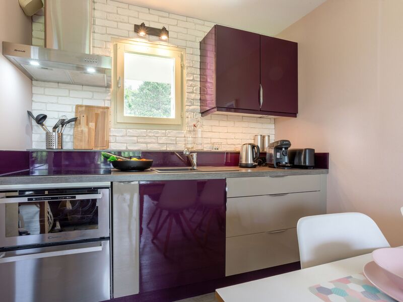 Appartement 2-kamers 30 m2, op de begane grond. Gerenoveerd in 2020, modern en gezellig ingericht: hal. Woon-/eetkamer met 1 2-pers divanbed (1 x 140 cm, lengte 190 cm), TV (Flatscreen TV). Uitgang naar het balkon. 1 kamer met 1 2-pers bed (1 x 140 cm, lengte 190 cm). Kookhoek (afwasmachine, 3 inductiekookplaten, broodrooster, waterkoker, magnetron, elektrische koffiemachine). Douche, aparte WC. Elektrische verwarming. Mooi uitzicht in de verte op zee en het landschap. Ter beschikking: Internet (WiFi, gratis). Rookmelders. Aanbod door een particulier volgens art. 155, IV van CGI.