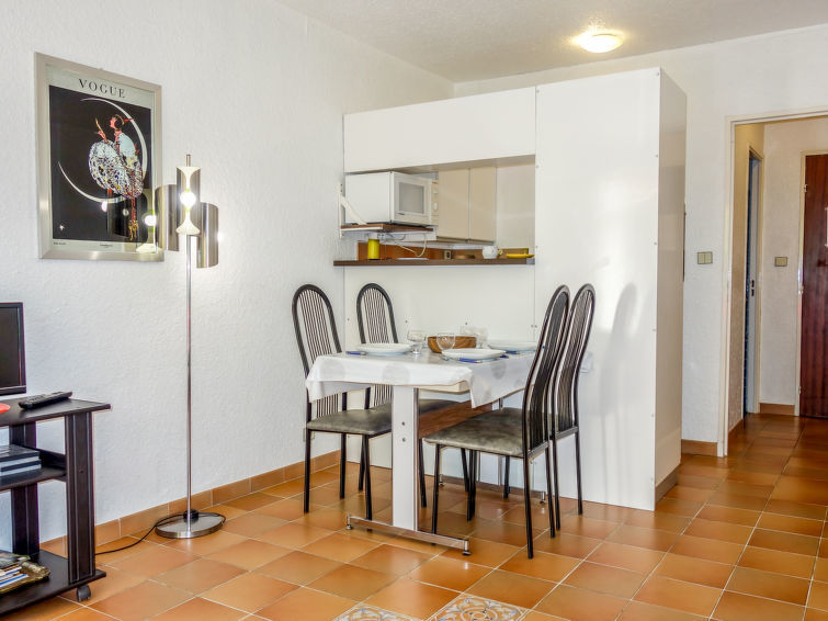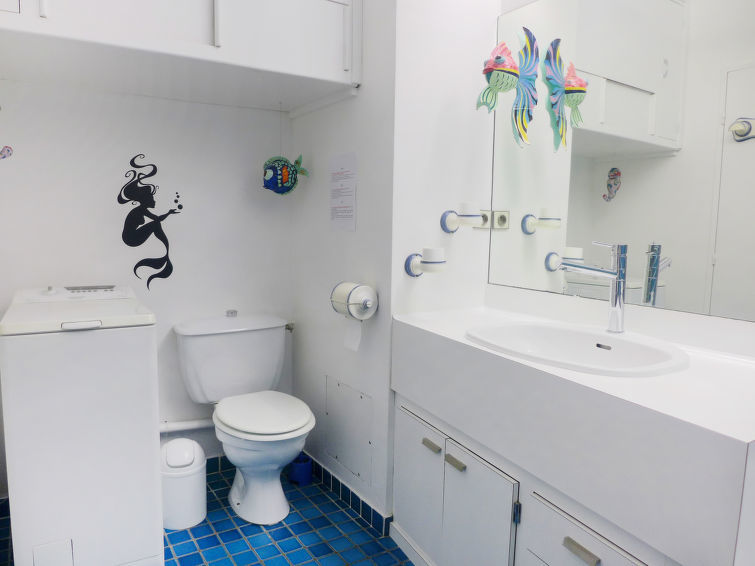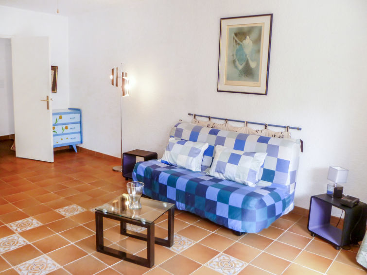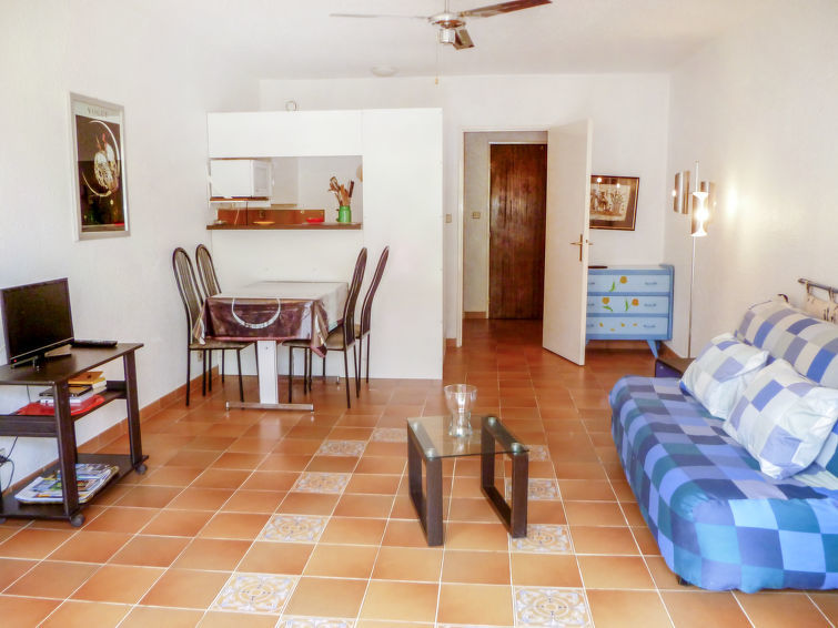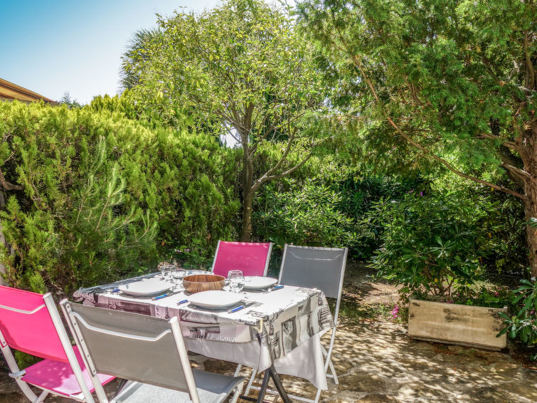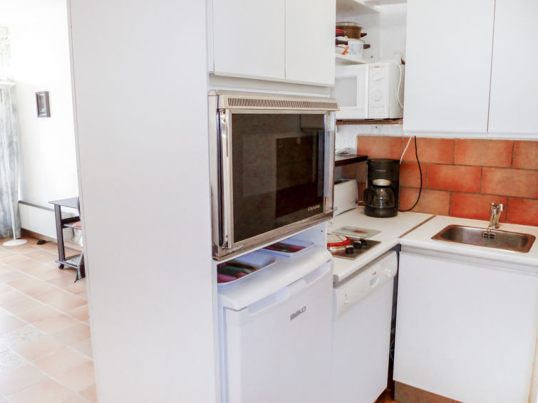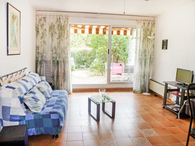 Studio 1-kamer 30 m2, op de begane grond. Mooi ingericht: woon-/eetkamer met panoramavenster met 1 2-pers divanbed (160 cm, lengte 200 cm), TV en DVD. Uitgang naar het terras. Kookhoek (oven, afwasmachine, 2 inductiekookplaten, broodrooster, waterkoker, magnetron, elektrische koffiemachine). Bad/WC. Elektrische verwarming. Terras 15 m2, zithoek in de tuin 10 m2, op het zuiden gelegen. Terrasmeubelen. Ter beschikking: wasmachine. Internet (Internet (WiFi), gratis). Parkeerplaats nr. 143. 1 klein huisdier/hond toegestaan. TV alleen FR. Rookmelders. 13028000482Z5