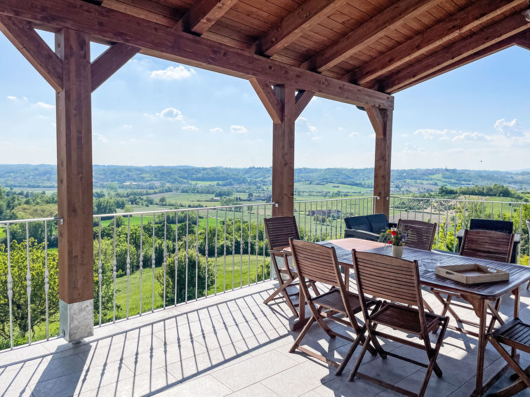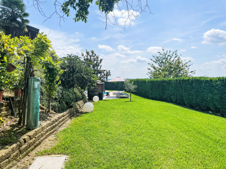Gezellig Huis met 3 woningen van 2 verdiepingen, omgeven door velden en wijngaarden. Buiten de plaats, 2 km van het centrum van Portacomaro, rustige, zonnige ligging op een heuvel. Voor medegebruik: wild terrein 1.500 m2 (omheind) met gazon en bomen, openluchtzwembad (11 x 4 m, 150 cm diepte, seizoensgebonden beschikbaarheid: 01.Mei. - 15.Okt.). Buitendouche, terras, tuinmeubelen, parkeerplaats bij het huis op het terrein. Levensmiddelenwinkel 2 km, supermarkt 5 km, restaurant 1 km, bakkerij 2 km, bushalte 1.6 km. Attracties in de buurt: Asti 12 km, Turin 50 km, Alba 35 km. Auto noodzakelijk. Eigenaar woont in apart huisgedeelte. De eigenaar heeft een hond.